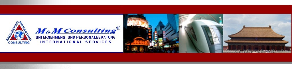 Willkommen auf der China-Seite von M&M! Liebe Geschäftsfreunde und Partner aus China und Deutschland Wir begrüßen Sie herzlich auf der China-Seite von M&M Consulting®. Jeder von uns ist gleichzeitig Kunde und Lieferant. Daher sind wir stets bemüht, als Ihr Kunde und Lieferant Ihre Anforderungen in höchstem Maß zu erfüllen und gleichzeitig unsere Leistungen, unsere Produkte sowie unsere nationalen und internationalen Services konsequent und zeitnah auf Ihre Bedürfnisse abzustimmen. Ihre Zufriedenheit ist unser Ziel.